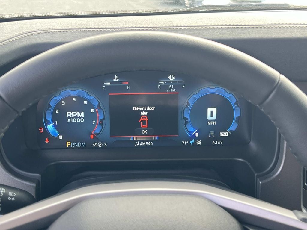 Equipment Group 334A Lux Package (2-Door Intelligent Access w/Lock/Unlock, 360-Degree Camera, Adaptive Cruise Control, Ambient Footwell Lighting, Connected Navigation, Dr & Pass Illuminated Sliding Visor Vanity Mirrors, Dual Smart Charging USB Ports, Dual-Zone Electronic Automatic Temperature Control, Evasive Steering Assist, Front Parking Sensors, Front Row Heated Seats, Information on Demand Panel, Power Outlet - Back Side of Center Floor Console, Radio: B&O Sound System by Bang & Olufsen, Rear Parking Sensors, Sideview Mirrors, and Universal Garage Door Opener), Alloy wheels, Wheels: 17 Carbonized Gray-Painted Aluminum, 4-Wheel Disc Brakes, 4.7 Axle Ratio, 7 Speakers, ABS brakes, Air Conditioning, AM/FM radio: SiriusXM with 360L, AM/FM Stereo, Auto High-beam Headlights, Auto-dimming Rear-View mirror, Brake assist, Compass, Delay-off headlights, Driver door bin, Driver vanity mirror, Dual front impact airbags, Dual front side impact airbags, Electronic Stability Control, Emergency communication system: 911 Assist, Exterior Parking Camera Rear, Front anti-roll bar, Front Bucket Seats, Front Center Armrest, Front fog lights, Front reading lights, Front wheel independent suspension, Fully automatic headlights, Heated door mirrors, Heated front seats, Heated steering wheel, Illuminated entry, Integrated roll-over protection, Internet access capable: FordPass Connect, Leather Shift Knob, Low tire pressure warning, Marine Grade Vinyl Heated Bucket Seats, Occupant sensing airbag, Outside temperature display, Overhead airbag, Overhead console, Panic alarm, Passenger door bin, Passenger vanity mirror, Power door mirrors, Power steering, Power windows, Radio data system, Remote keyless entry, Security system, SiriusXM w/360L, Speed control, Split folding rear seat, Steering wheel mounted audio controls, SYNC 4, Tachometer, Telescoping steering wheel, Tilt steering wheel, Traction control, Trip computer, Variably intermittent wipers, and Voltmeter.